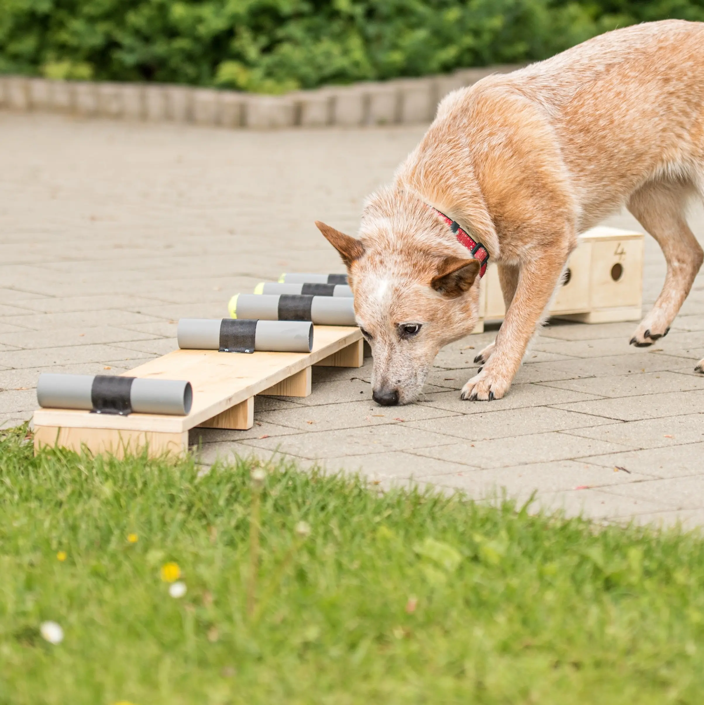 Eine wunderbare Möglichkeit deinen Hund auszulasten ist die Nasenarbeit. Sei es, dass dein Hund einen Gegenstand, wie etwa eine Wäscheklammer, in einem Versteck findet und anzeigt, indem er sich z.B. hinlegt. Sei es, dass er aus einer Reihe von Gerüchen genau den gesuchten Geruch „herausschnüffelt“, ganz so wie ein Drogenspürhund. Auch das Verfolgen einer Wurstwasserspur kann sehr aufregend sein. Nach der Suche ist dein Hund sicherlich müde und zufrieden.